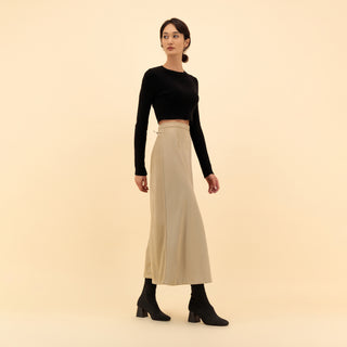 A Zinali favorite, the Maxi Suede Flare Skirt in black combines timeless elegance with versatility. With a flattering high-waist fit and soft suede finish, it’s perfect for polished or casual looks—this versatile piece is a must-have for every wardrobe.