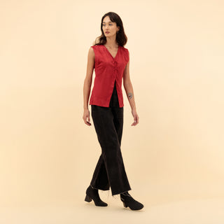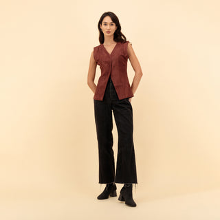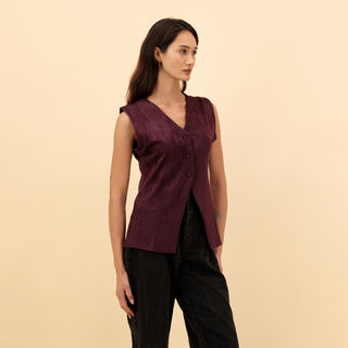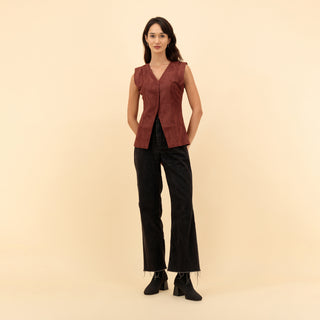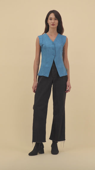 Elevate your wardrobe with the Suede Vest in a vibrant aqua hue. Designed with a sleek V-neckline, button-up front, and a perfectly tailored fit, this piece brings a fresh pop of color to any outfit. Whether layered or worn solo, it exudes effortless sophistication and modern charm.